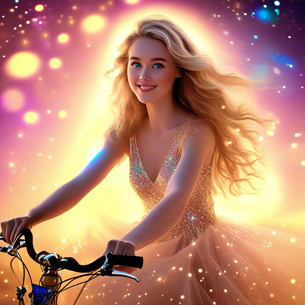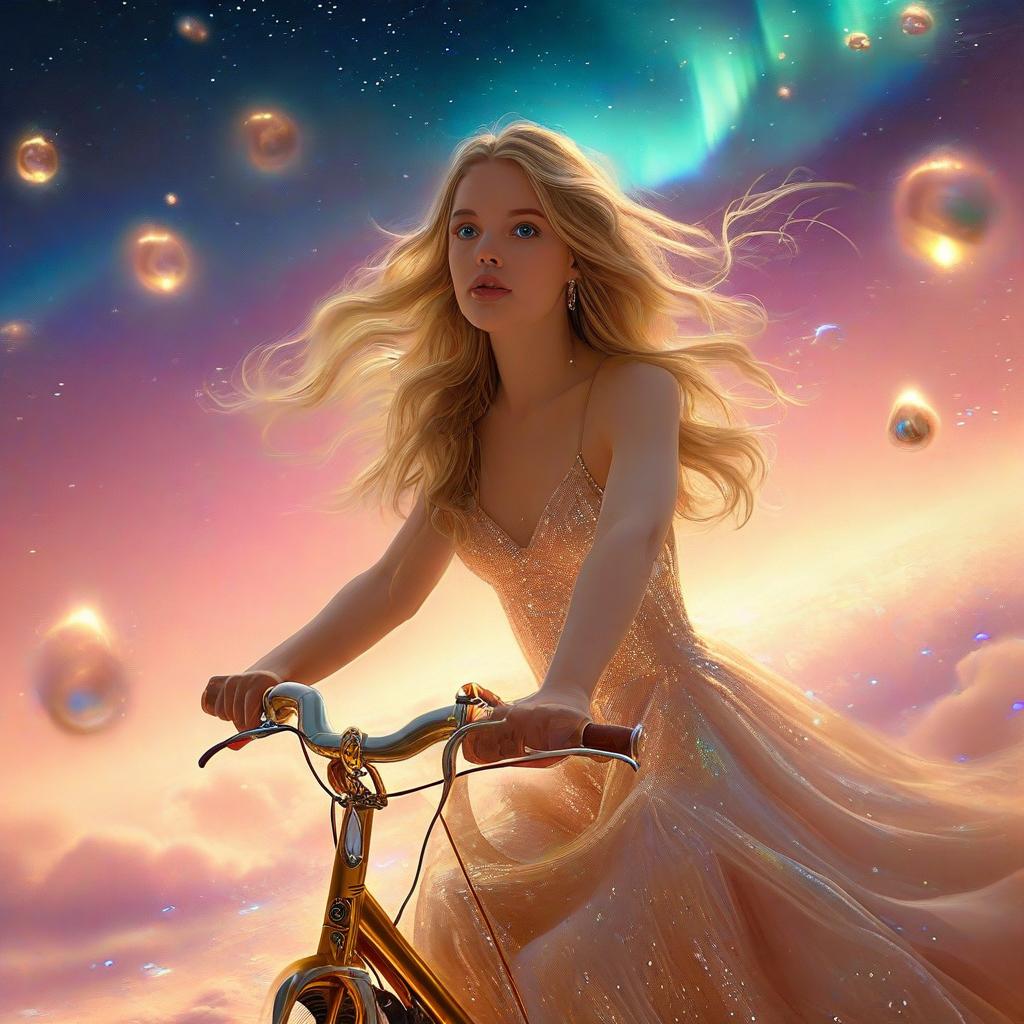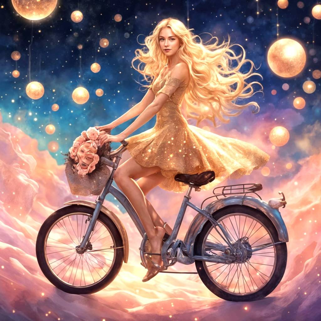 She pedals through the dying light where fading comets sway.
