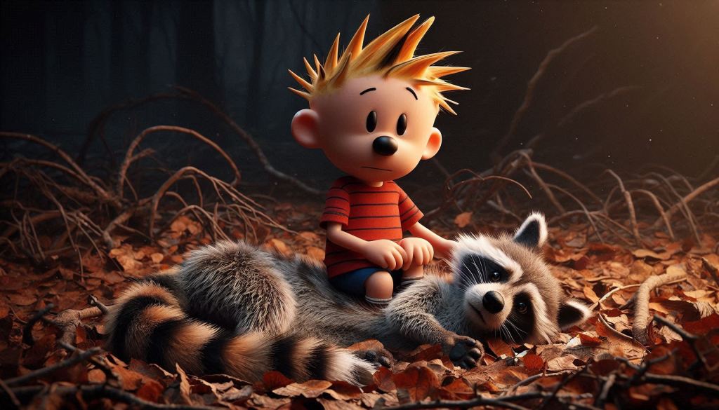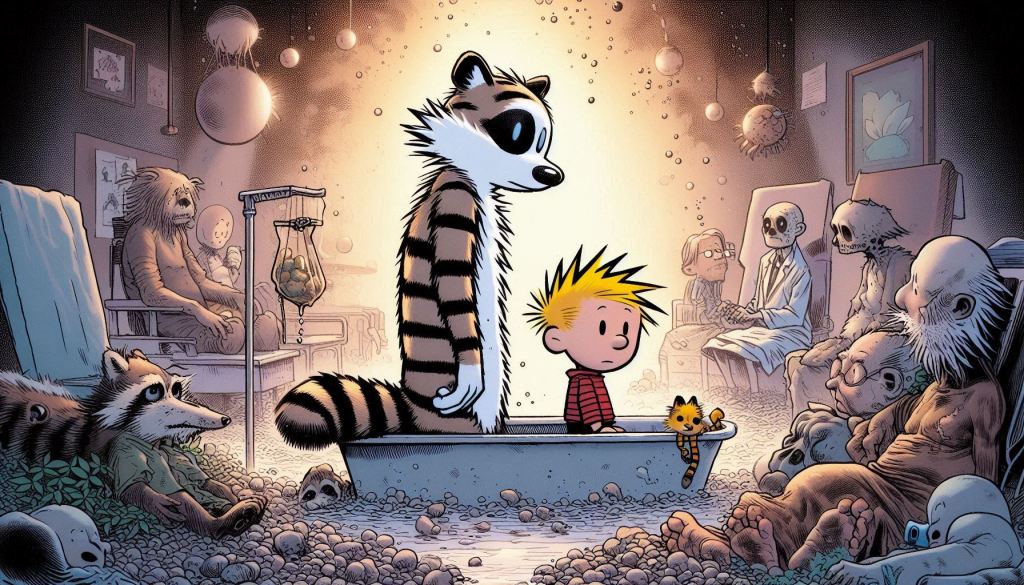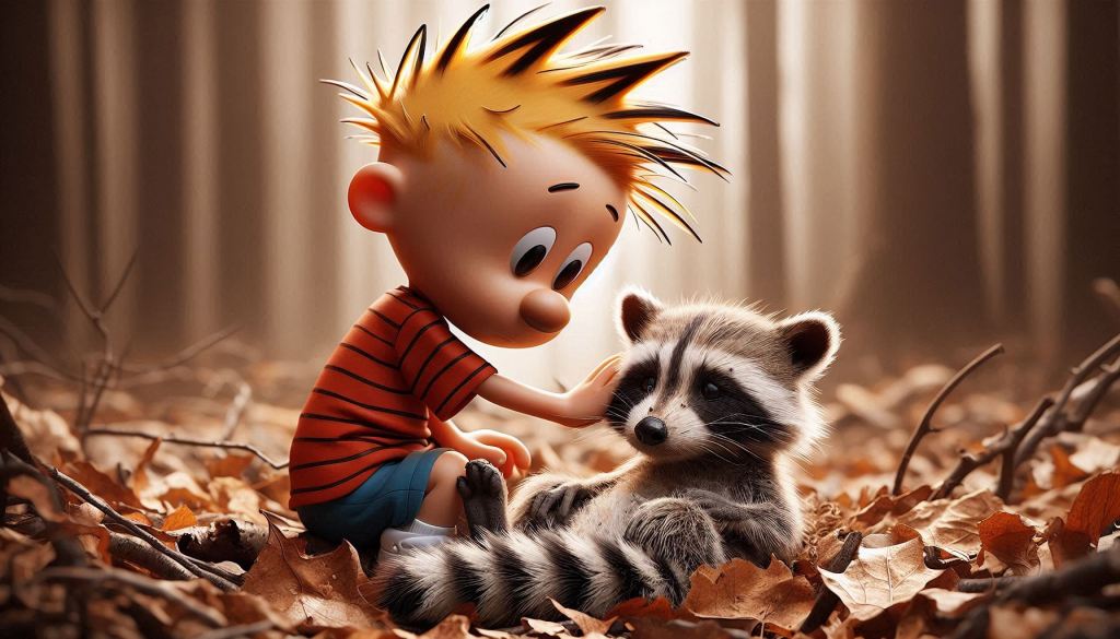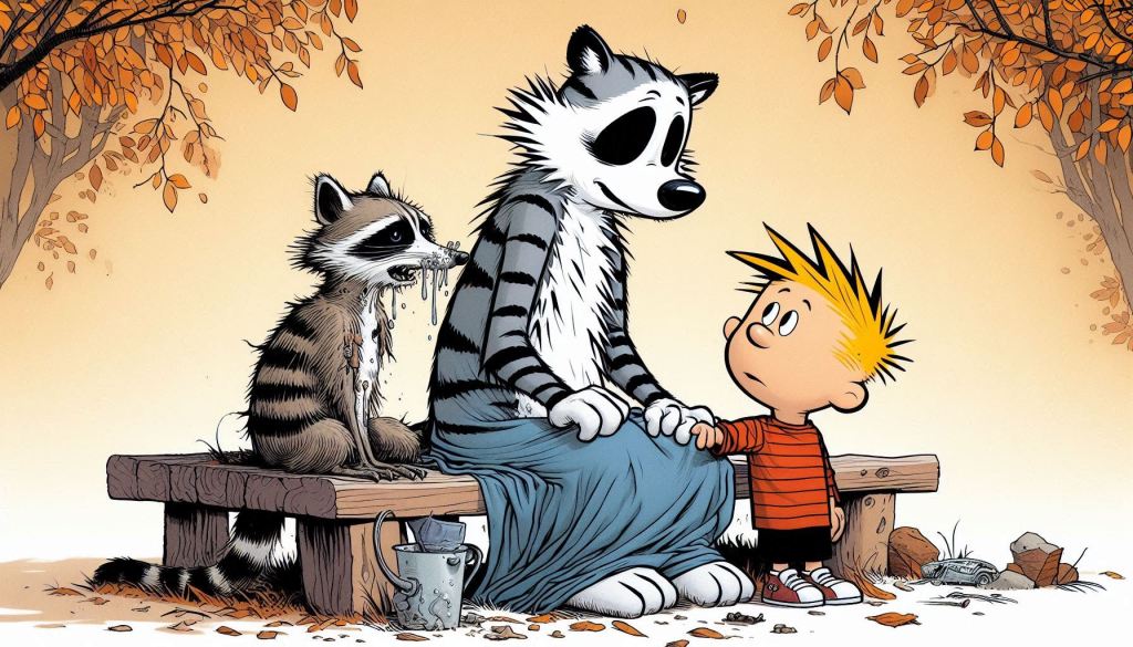 In “The Sick Raccoon” story arc of Calvin & Hobbes, Bill Watterson explores themes of mortality and impermanence through Calvin’s experience with a young raccoon’s illness, blending hope, humour, and sorrow as he confronts death for the first time.