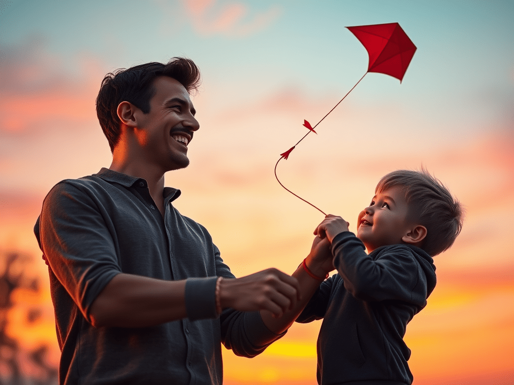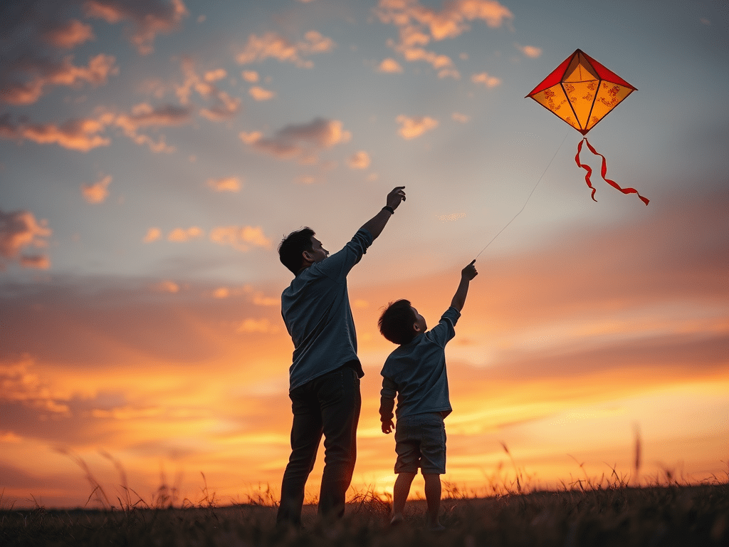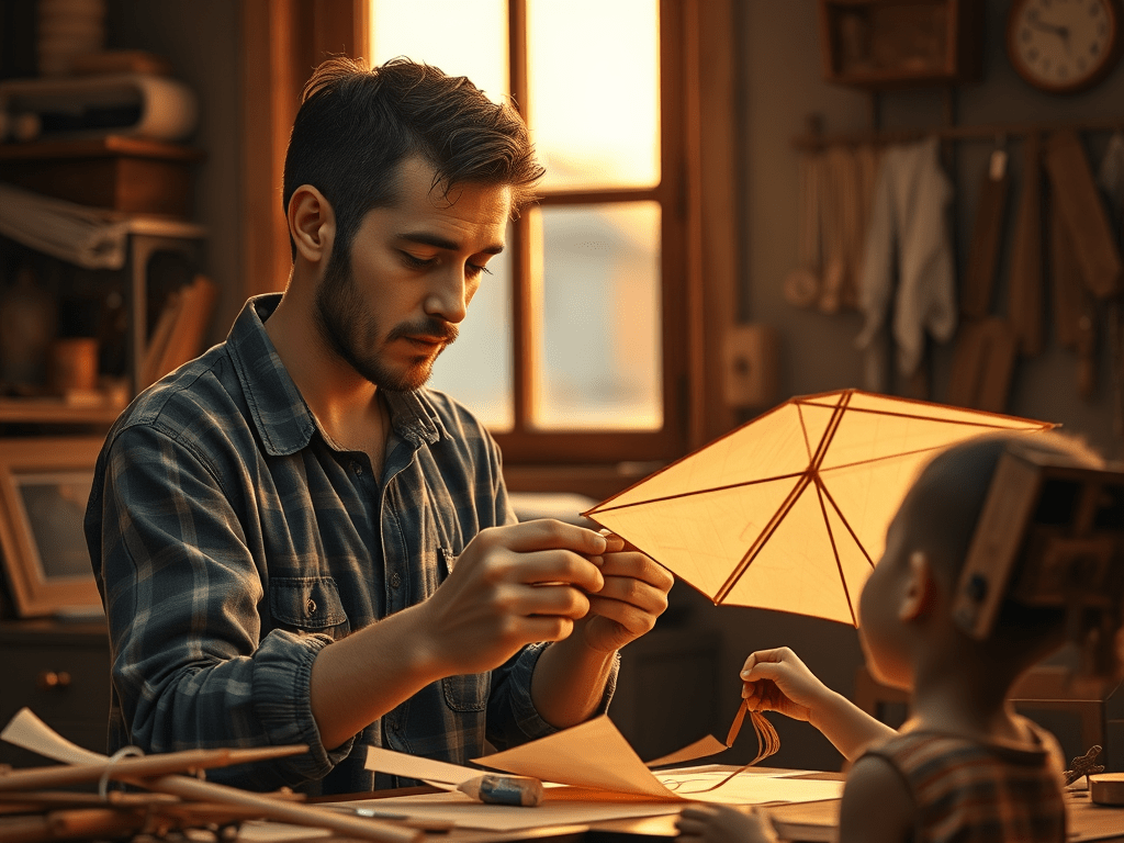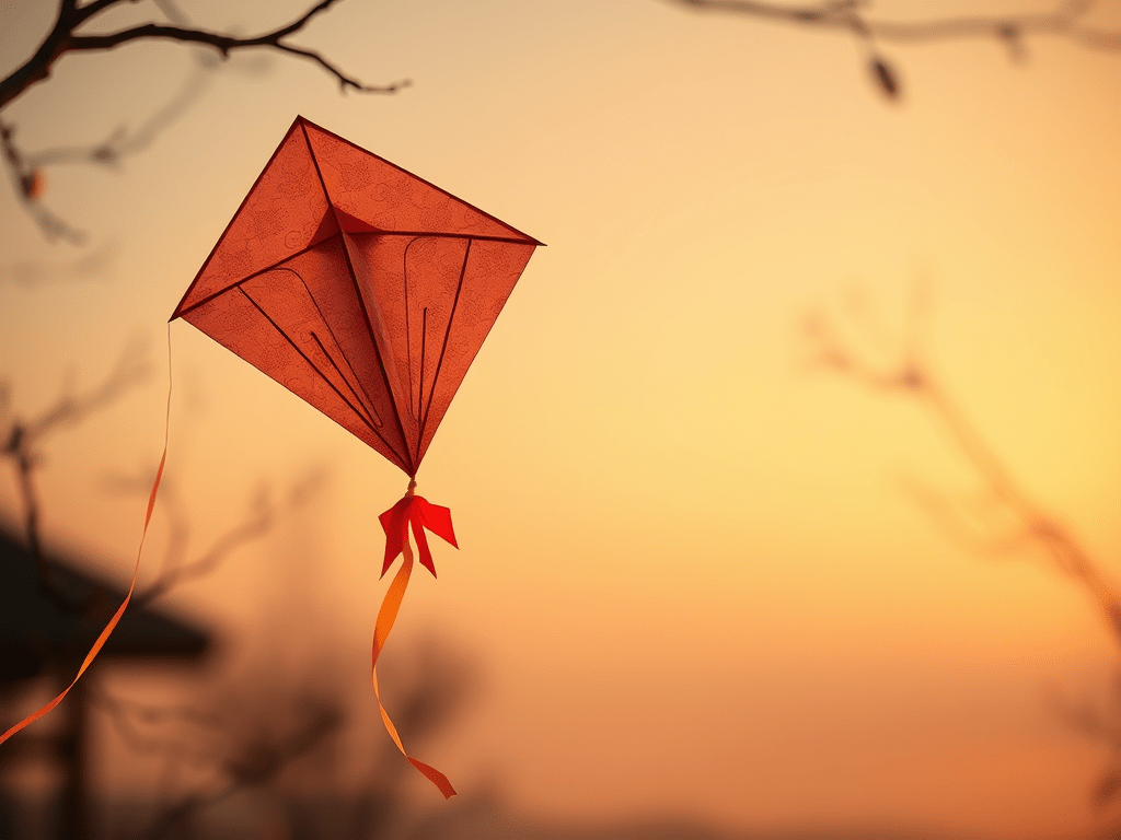 In the gentle hum of a father’s labour, dreams are born. From the ancient embrace of trees, he crafts a kite—a fragile wonder of paper, bamboo, and glue, tethered to the world by a silken thread. Each element tells a story: the resilience of bamboo, the history of paper, the binding promise of rice glue.