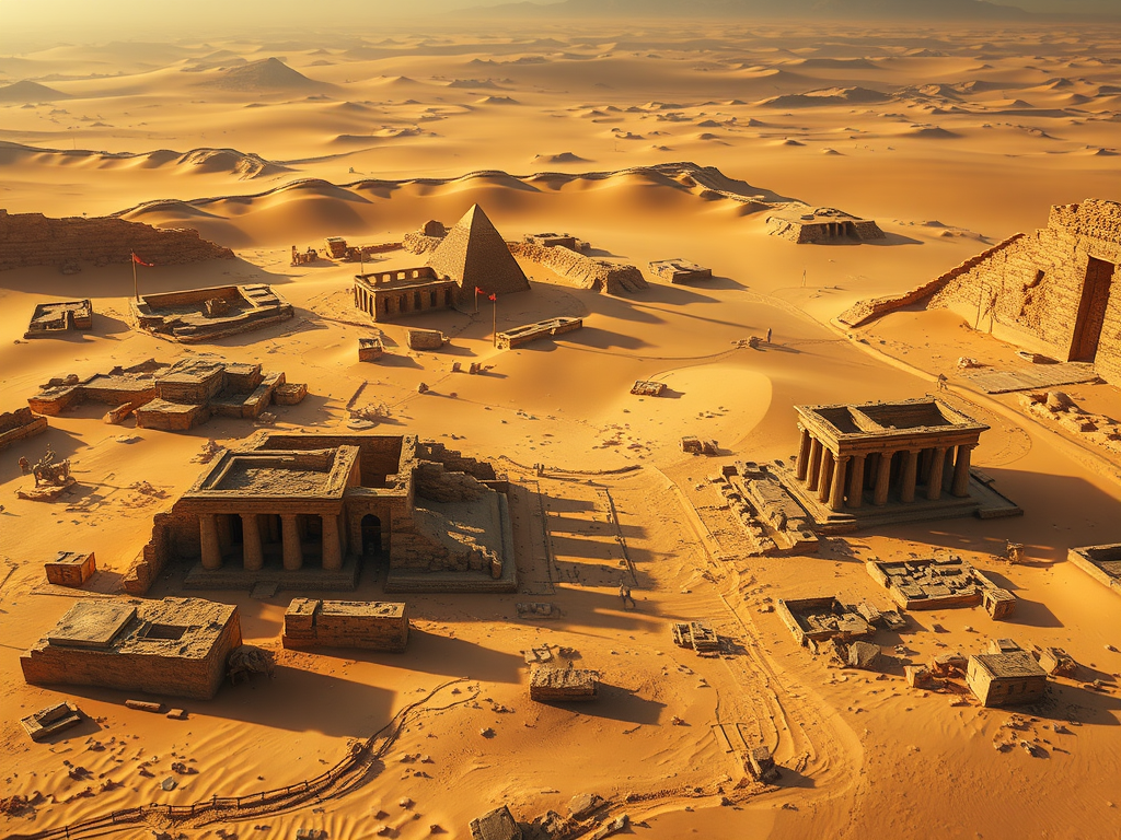 The monumental structures, surrounded by the desert, symbolize human creativity and determination, reminding us that our aspirations and efforts to overcome impermanence provide meaning and connection, thereby creating a lasting legacy beyond our earthly lives.