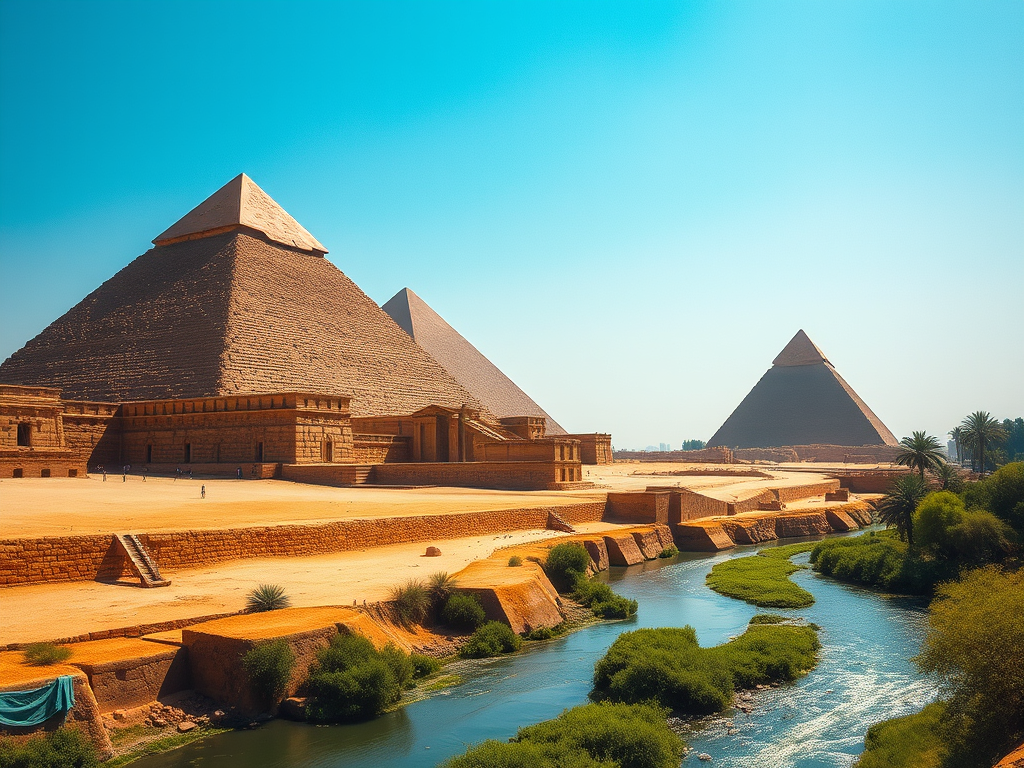 In an ancient land, the majestic pyramids symbolize ambition and the mortality of past kings, while the eternal Nile carries the legacy of a civilization built on dreams and aspirations.