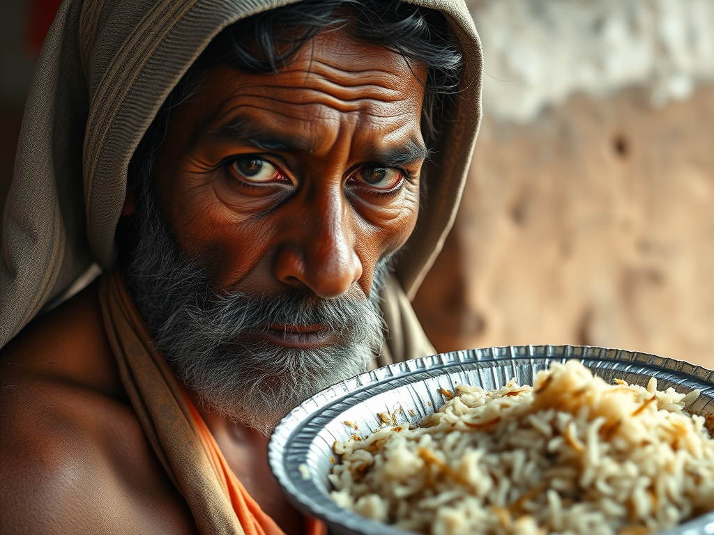 No, just moldy rice and tears on a cracked old aluminum plate,