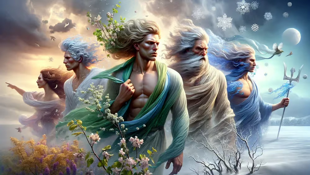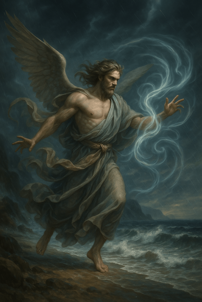 Zephyrus, in Greek mythology, is the god of the west wind, depicted as a gentle figure associated with spring. He is the son of the Titan Astraeus and the goddess Eos, and he is often paired with his brother Boreas and his sisters, Notus and Eurus, who are gods of the north, south, and east winds, respectively. Known for bringing favorable winds for sailors and farmers, Zephyrus is also linked to the spreading of pollen and blooming flowers.