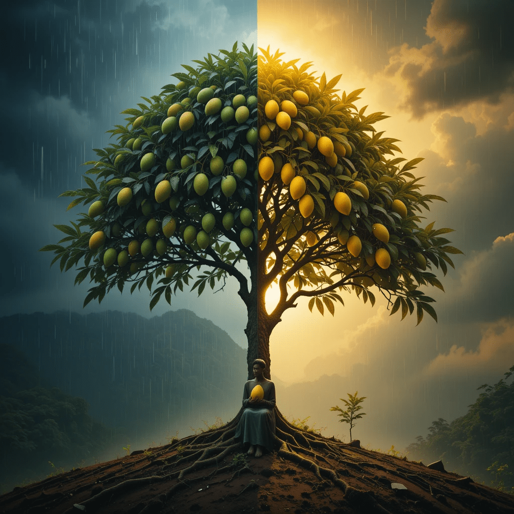 Thus, life shapes us, as time tempers the mango. Our hardships, though sour, are not without purpose. They teach resilience, foster growth, and prepare us for the sweetness that awaits. To endure the rains and heat is to trust in the artistry of life; a process that transforms bitterness into beauty, just as an unripe mango becomes the bearer of sweetness and joy.